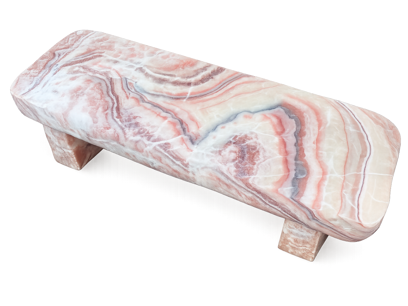 Explore our unique collection of one-off natural onyx planters and benches, meticulously presented with elegant photography and a refined aesthetic.